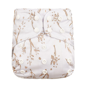 Delicate, simple, and understated, Fleur is our beautiful floral design on a crisp white reusable nappy. Soft, elegant, and timeless, this print brings a touch of nature’s charm to your little one’s cloth nappy stash.
